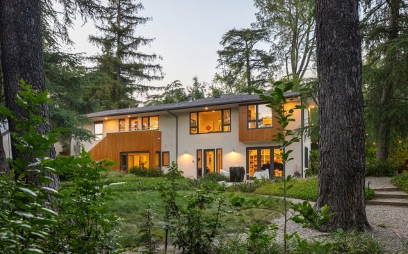 Nestled in a serene forest, this extraordinary home is surrounded by countless layers of green, creating a peaceful retreat where nature’s hues take center stage.